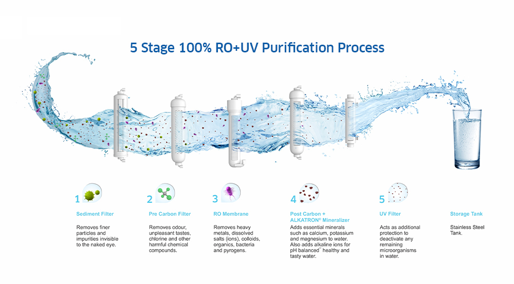 5 Stage 100% RO+UV Water Purifier with 2000 TDS RO membrane