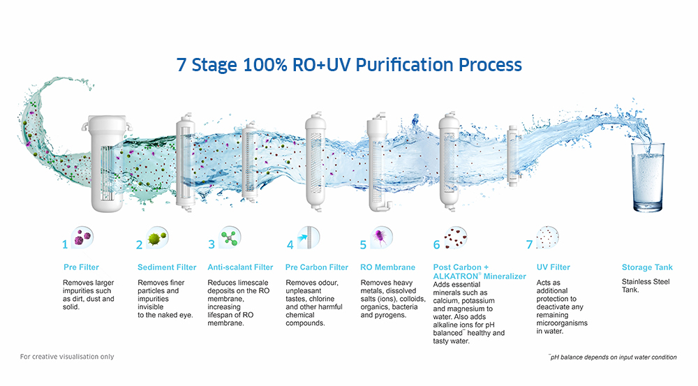 6 Stage 100% RO+UV Water Purifier with 3000 TDS RO membrane